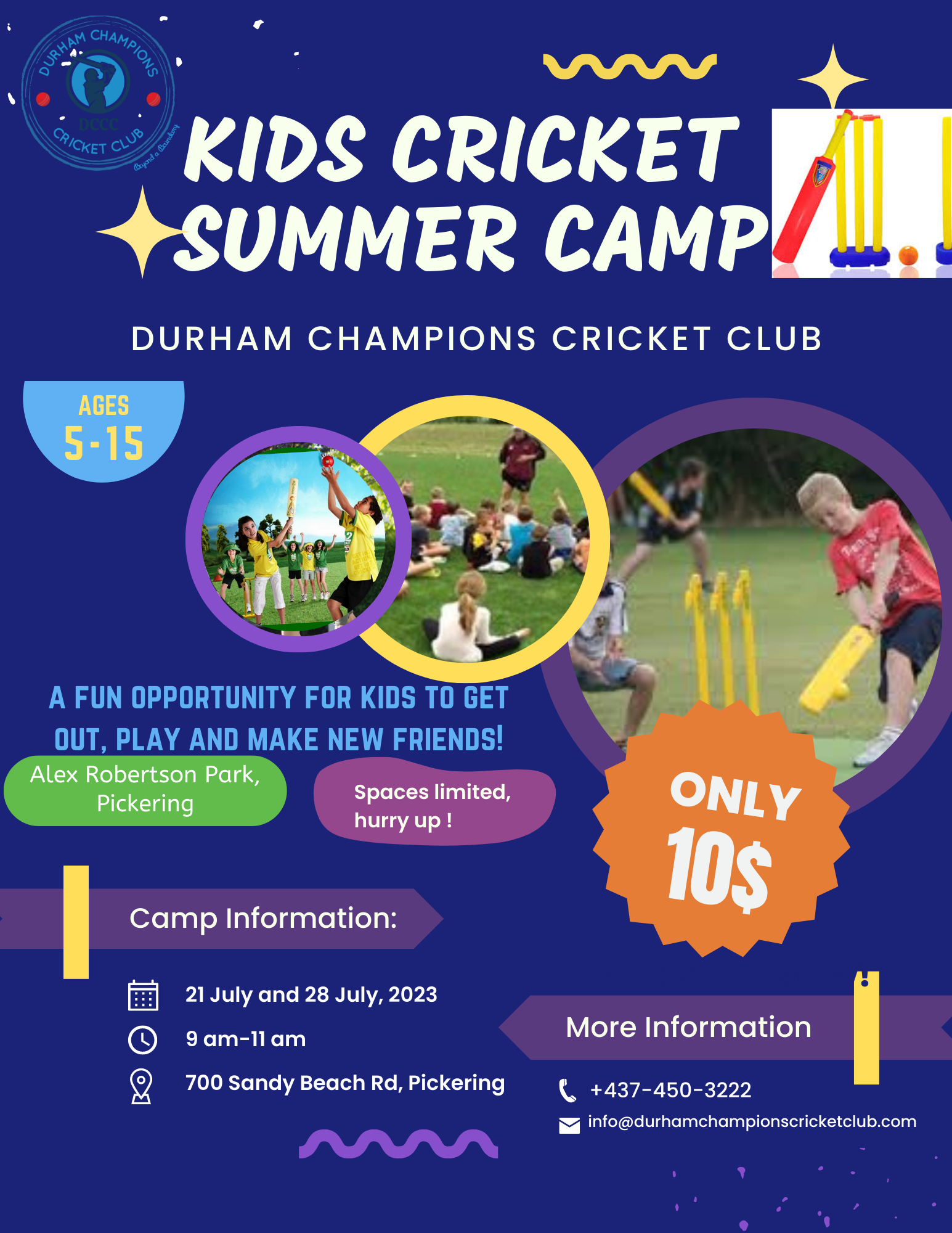 Kids Cricket Summer Camp 2023 (21st July & 28th July), Alex Robertson Park, Pickering